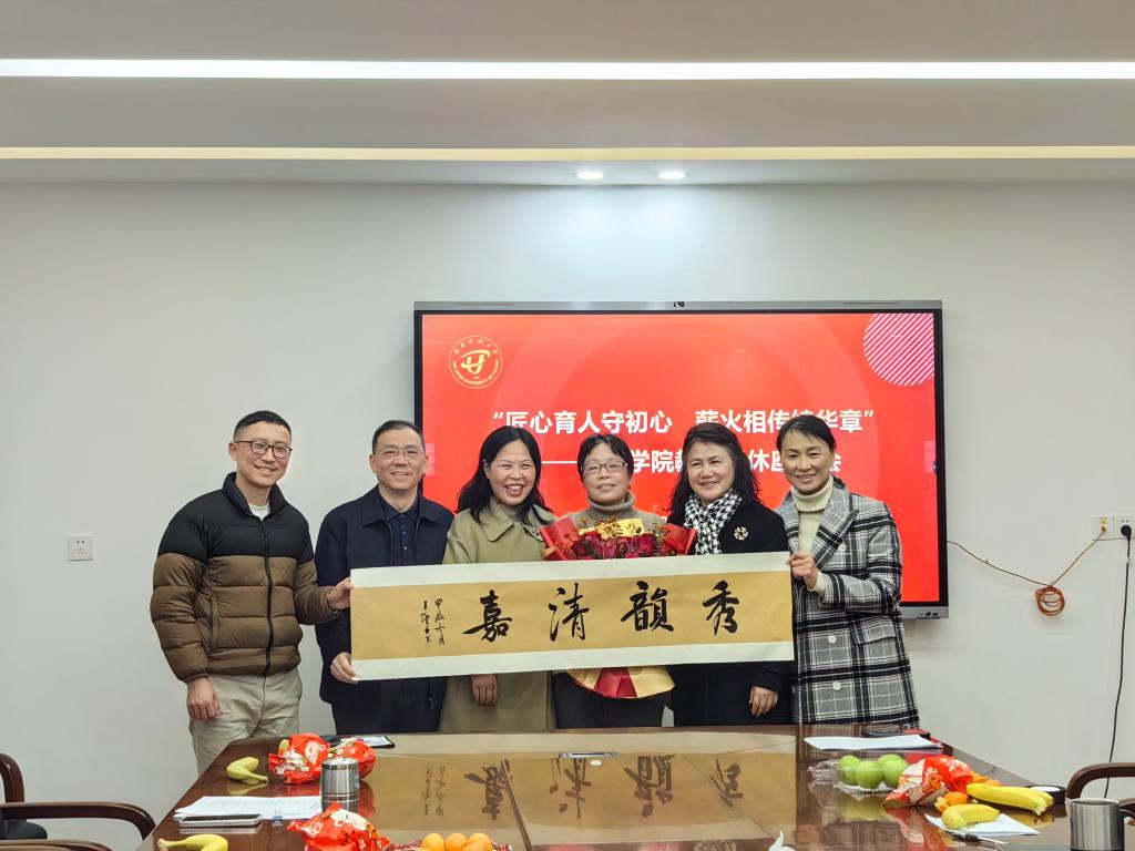 会议还举办了荣休教师座谈,对扎根教坛40载、即将光荣退休的财经与管理系林秀清教授表达了深深的敬意和良好的祝福。大家深情回顾了与林教授相处的点点滴滴,对林教授多年来坚守初心、严谨治学的行为给予了高度评价,对她为学校教育事业的辛勤付出和无私奉献表达了衷心的感谢。学院班子成员为林教授送上鲜花和“秀韻清嘉”的题字,祝福她未来生活福泽绵长,平安顺遂。