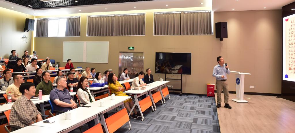 林传生为师生带来《书法学习中的辩证原理》专题讲座,他从观念的辩证思考、结字的辩证关系、章法和形式中的辩证关系以及笔法中的辩证关系等多个方面,深入剖析了书法艺术的内在规律与奥秘。正确的观念是书法学习的基础,而辩证思维则是深化理解书法艺术的关键。他引导大家思考如何在书法学习中运用辩证原理,以更全面、深入的方式理解和体验书法艺术的魅力。林老师在“传统”与“创新”、“雅”与“俗”、“疏”与“密”、“收”与“放”等对立统一的概念上结合古代书论和古今作经典书法作品深入分析,辩证看待这些关系,使书法作品更加和谐统一。林老师信手拈来的知识、风趣幽默的语言、图文并茂的资料,让师生沉浸在书法艺术的海洋。讲座现场气氛热烈,师生们积极互动,大家纷纷表示,通过此次讲座,对书法学习中的辩证原理有了更深刻的认识和理解,同时也激发了大家对书法艺术的热爱和追求。