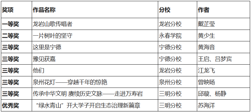 日前,国家开放大学网站公示“国家开放大学‘人文开大’短视频创作大赛”的获奖名单。我校取得一等奖1项、二等奖1项、三等奖5项、优秀奖1项,5位教师获评“优秀指导教师”荣誉,福建开放大学荣获组织奖。