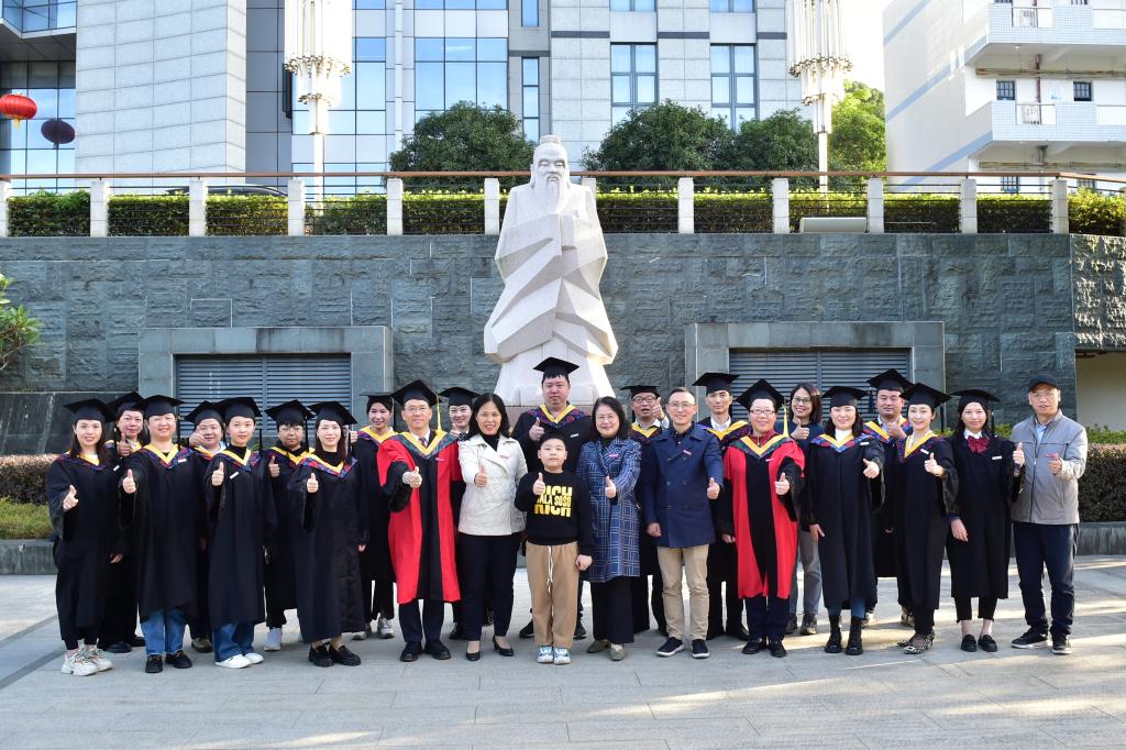 毕业典礼教师发言代表、中文与法律系副教授蔡颖华表示,希望同学们时刻牢记“自强弘毅、励学敦行”的校训,在逆境有披荆斩棘、自我突破的精神,在平凡中有敢想敢干、勇于创新的气概,在前行中有脚踏实地、行稳致远的品格,保持探索的愿望和学习的渴望,通过不断学习打造自己的核心竞争力,跟上时代发展步伐、跟上事业发展需要,更大限度的实现自身价值。