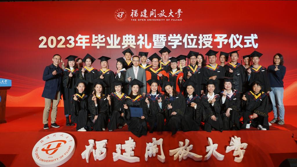 今日乘风起,未来皆可期。11月18日下午,福建开放大学2023年毕业典礼暨学位授予仪式以线下精心呈现、线上同步直播的形式举行。校领导、国开学位评定委员会委员,全省开放大学系统教授代表、获得学位的毕业生及其他毕业生代表300多人在桂山校区参加了主会场现场毕业典礼活动。全省万名师生和家长校友在主会场、分会场及通过网上视频直播等方式参加了别开生面的“云毕业典礼”。