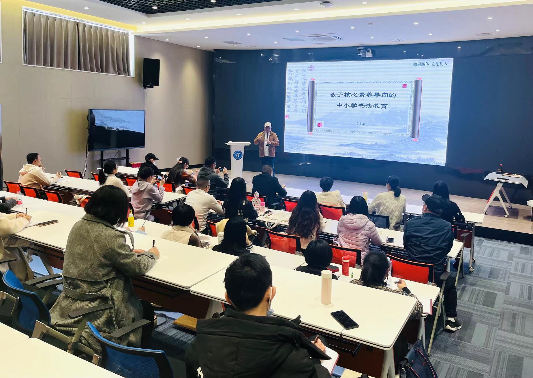 在探索书法学本科教学过程中,文经学院为学生开设了不同类型的讲座,渗透文化教育,从思想上引领学生提高审美鉴赏能力和文化水平,使学生对书法的认识不仅仅局限在技术层面,而是透过书法这一媒介,让学生领略中国传统文化的丰富内涵。3月6日,文经学院在左海校区智慧教室为书法学本科专业学生开设数场讲座,每场都有书法学专业师生近50人参与。