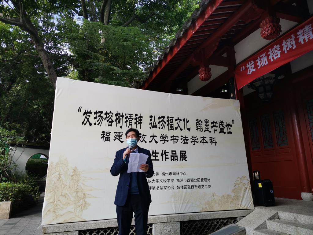 福建开放大学党委副书记马成斌、纪委书记王幼新出席开展仪式。王幼新表示,福建开放大学扎根八闽大地,办百姓身边的开放大学,培养了大量“留得住、用得上、干得好”的技能型人才。学校将深入实施“创优提质”战略,发挥终身教育职能,办好书法学本科等特色专业,助力学习型社会构建。西湖公园管理处主任王晶表示,西湖书院是清代福州四大书院,文化底蕴深厚,公园管理处希望加强与相关院校合作,传承弘扬中华传统文化,努力提升市民文化素养。