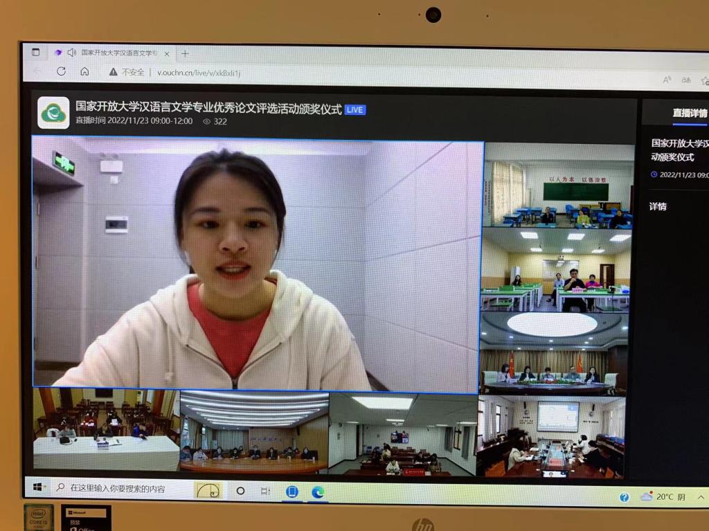 一等奖获得者福建开放大学学生侯宁代表获奖学生发言