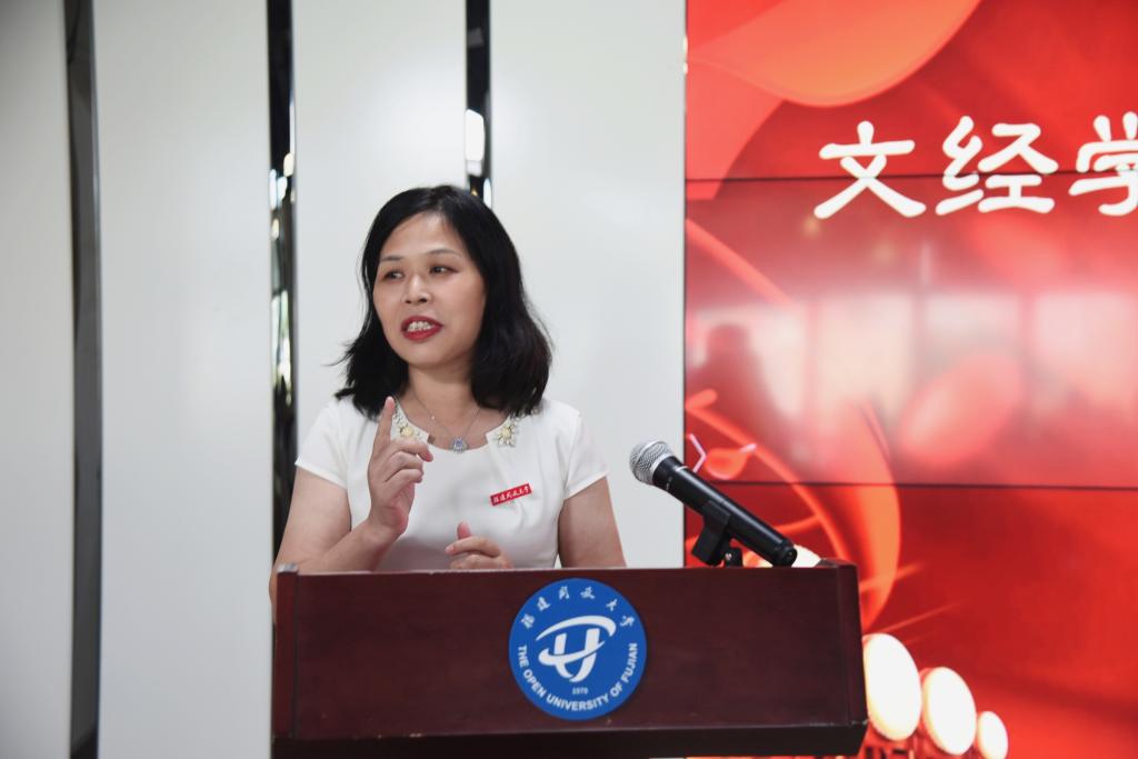 文经学院党总支书记、院长王妙真对新同学的到来表示热烈欢迎。她传达了习近平总书记在中国人民大学考察调研时的重要讲话和给北京师范大学“优师计划”师范生重要回信精神,勉励新同学们自强弘毅、励学敦行、珍惜韶华、勇毅前行,在福建开放大学的青春赛道上奋力奔跑。她向同学们介绍了学校和学院的改革发展和教育教学情况,特别是近年来学院贯彻落实学校党委要求,为学生开展思想政治工作和提供学习支持服务的情况,勉励同学们树立信心,珍惜良好的学习机会,尽快适应开放大学特点的学习模式,学有所得、学有所成,在实践中坚定信心、淬炼品质、增长才干、回馈社会,以实际行动迎接党的二十大胜利召开。