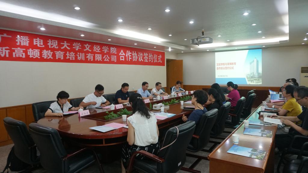 会上,文经学院院长刘玉兴、上海新高顿教育培训有限公司副总裁舒畅代表双方在合作协议书上签字。