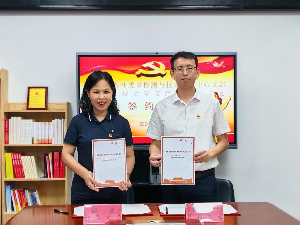校检共建 在茶检中心党员活动室,文经学院党总支班子与省茶检中心党支部开展了校检共建座谈会。党总支书记王妙真与省茶检中心党支部书记兰元签署了基层党组织合作共建协议。双方表示,将深入贯彻落实习近平总书记关于统筹做好茶文化、茶产业、茶科技工作的重要指示,发挥检校党建联动优势,创新基层党组织共建联创机制,为助力我省乡村振兴培养更多应用型人才。