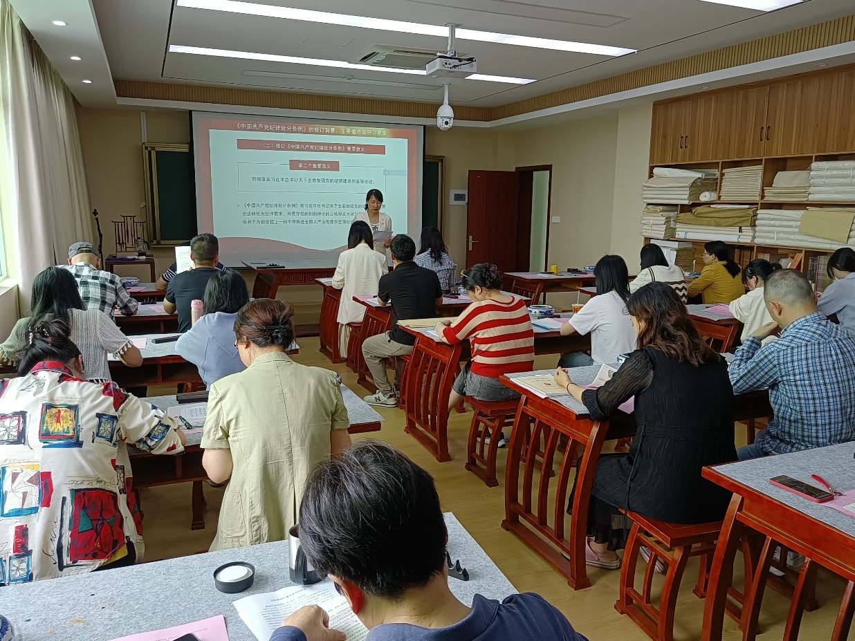 最后,王妙真就学院开展党纪学习教育工作的具体实施进行了周密部署。她强调,开展党纪学习教育是加强党的纪律建设、推动全面从严治党向纵深发展的重要举措,学院要精心组织深入实施,落实落细各项任务,团结带领全体党员、干部,推动党纪学习教育取得实实在在成效。她要求,全院党员在开展党纪学习教育的活动中要坚持“快”与“准”融合贯通、坚持“严”与“实”融合贯通、坚持“知”与“行”融合贯通,切实把学习成果转化为推动学校事业高质量发展的实绩。