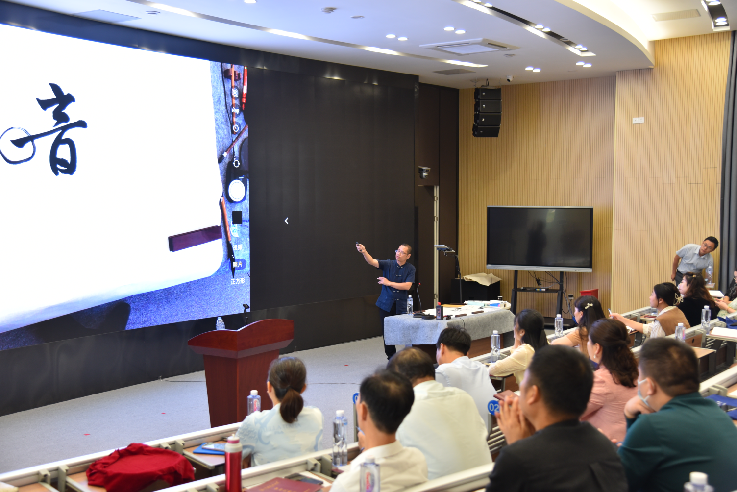 为普及书法艺术知识和书法鉴赏能力,帮助学生领悟书法艺术的魅力,加深对中华优秀文化传统的了解与热爱,营造翰墨飘香、墨韵溢彩的校园文化氛围,10月9日,文经学院在桂山校区智慧教室开展书法学本科专业2022秋季学期第一次面授课,邀请福建省硬笔书法家协会会长严祖喜作题为《中国书法艺术发展展望及书协会员作品评析》的讲座。校党委委员、纪委书记王幼新出席活动,文经学院书法学专业师生等70余人参加讲座。