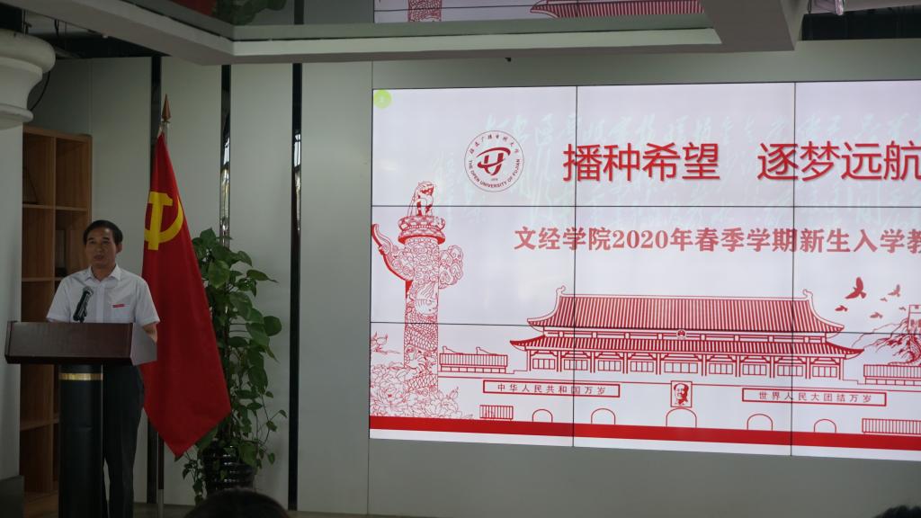 5月30日上午,在全省电大2020年春季开放教育新生开学典礼暨同上开学第一课活动后,文经学院在桂山校区明德楼举行新生入学教育。学院领导、班主任和新生代表50余人参加了入学教育活动。